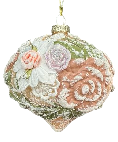 Шар елочный ChristmasDeLux Луковка с цветами кремовый, 9.5см