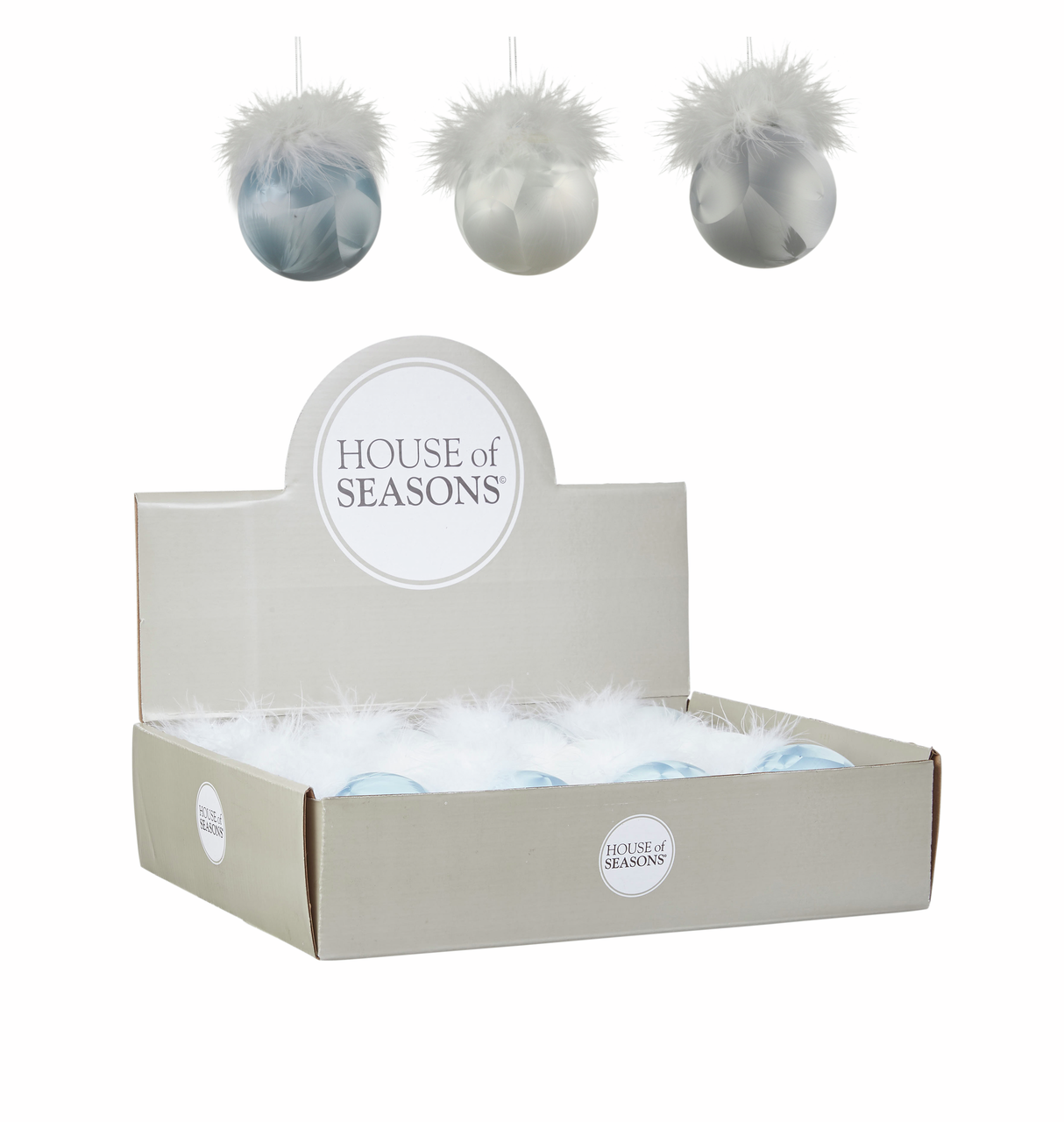 Шар ChristmasDeLux с перьями, 8см - изделие прекрасно подойдет для украшения ели, декорирования различных новогодних композиций. Эффектно будет смотреться на ветвях обычного дерева, стилизованного под новогоднее