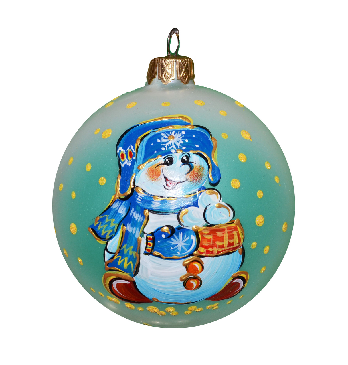 Шар Снеговик в подарочной упаковке в ассортименте, 80 мм отлично смотрится среди пушистой хвои, служит украшением венков, гирлянд, настенных и напольных композиций. Его сверкающий блестками узор напоминает сюжет из русских сказок, завораживает, возвращает в беззаботное детство. Елочная игрушка произведена из стекла и расписан с помощью гипоаллергенных красок и мелких глиттерных блесток. Для фиксац��и украшения предусмотрен традиционный металлический колпачок. Шар принесет в дом теплую, праздничную атмосферу, может стать милым подарком для коллеги или близкого человека.