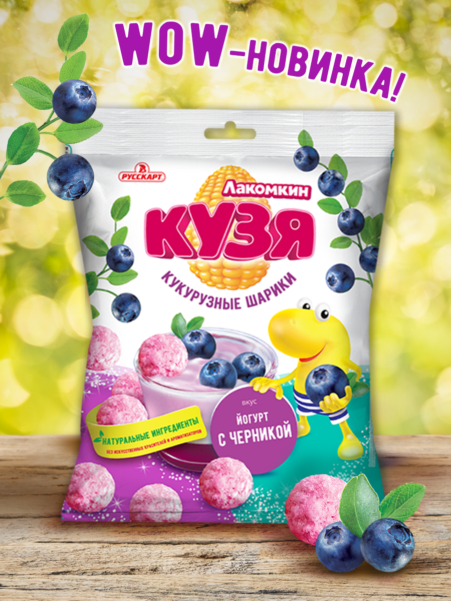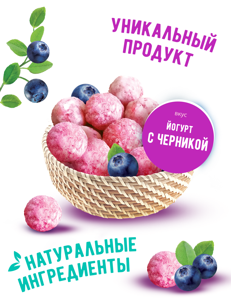 Кукурузные шарики со вкусом йогурта с черникой. Это воздушный сливочный десерт нежно-розового цвета с мягким ягодным послевкусием. Только натуральные ингредиенты. Без искусственных красителей и ароматизаторов.