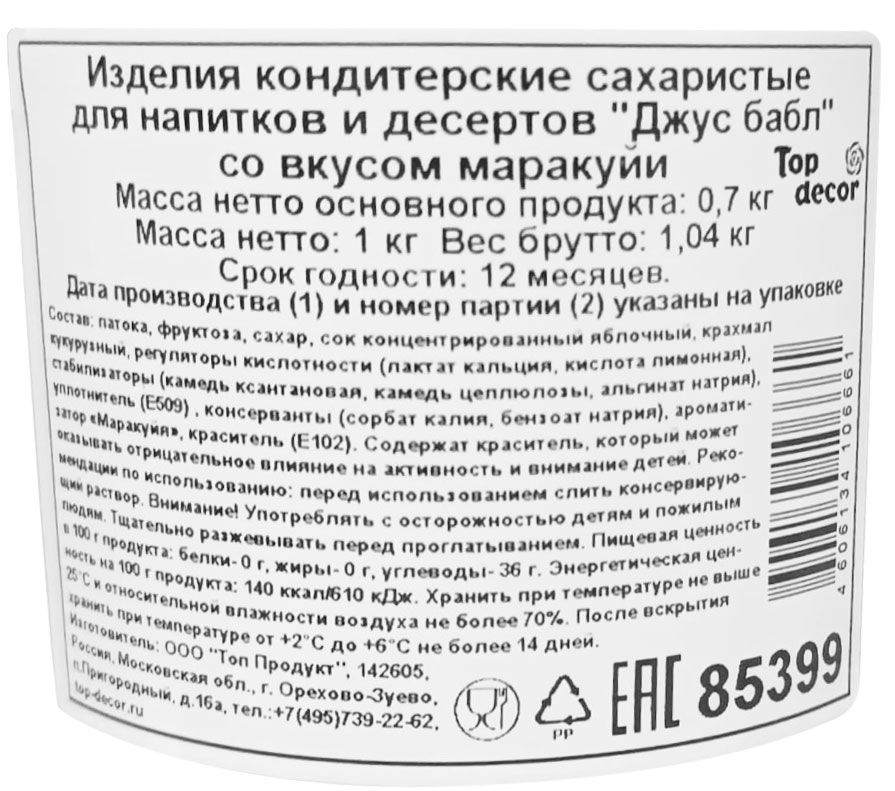 Шарики соковые джус бабл Top Decor маракуйя, 1кг