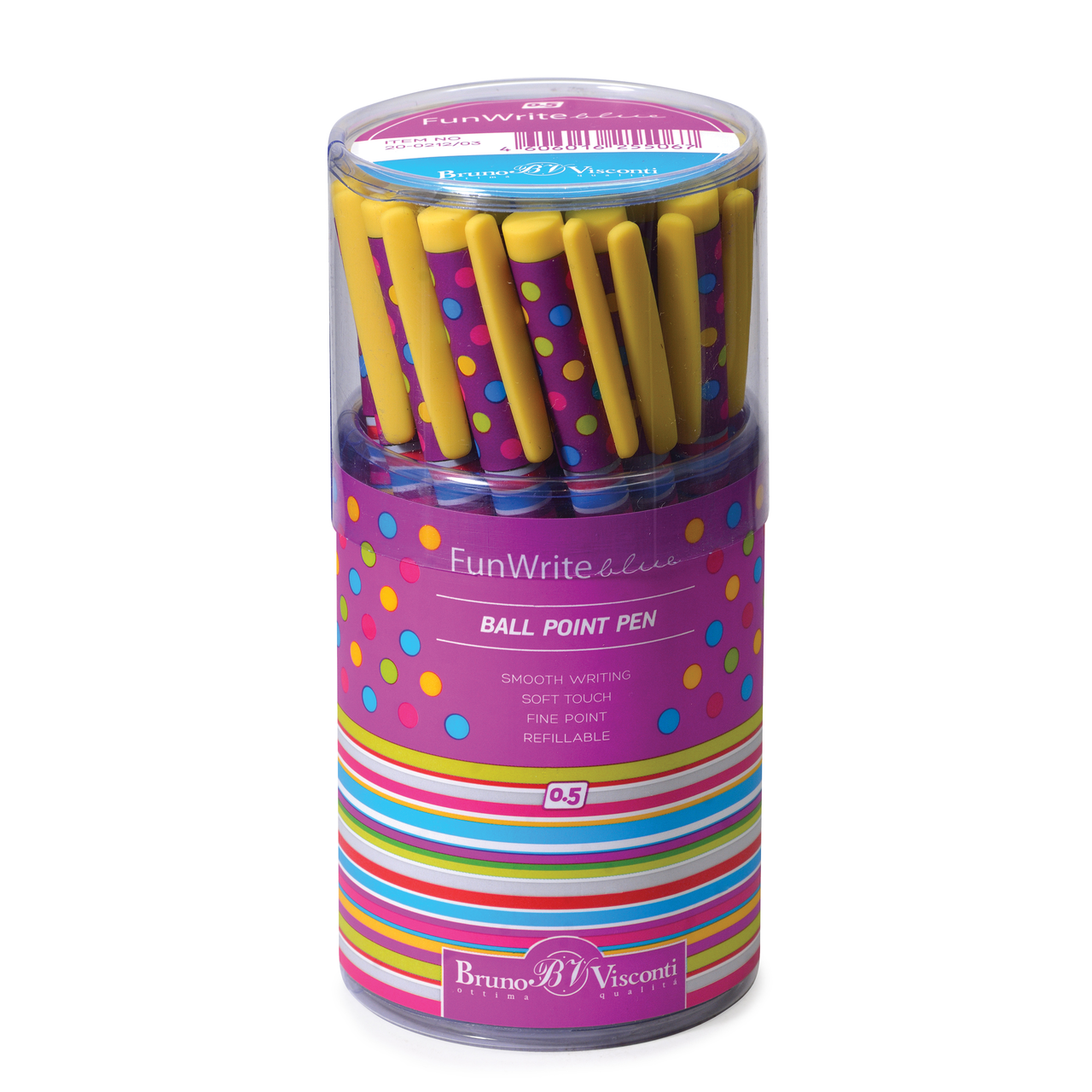Ручка шариковая Bruno Visconti Fun Write 0,5 мм, 1 шт. представляет собой идеальный инструмент для тех, кто ежедневно записывает информацию на бумажных носителях. Она одинаково удобна для школьников, студентов, офисных работников благодаря своей продуманной эргономике. Те, кто ценит мягкость и четкость письма, качество и стиль, комфорт во время написания, с удовольствием будут использовать эту ручку постоянно. Она не скользит в руке, не требует напряжения пальцев, оставляет приятные тактильные ощущения. Даже после продолжительного использования без перерыва кисти не устают.