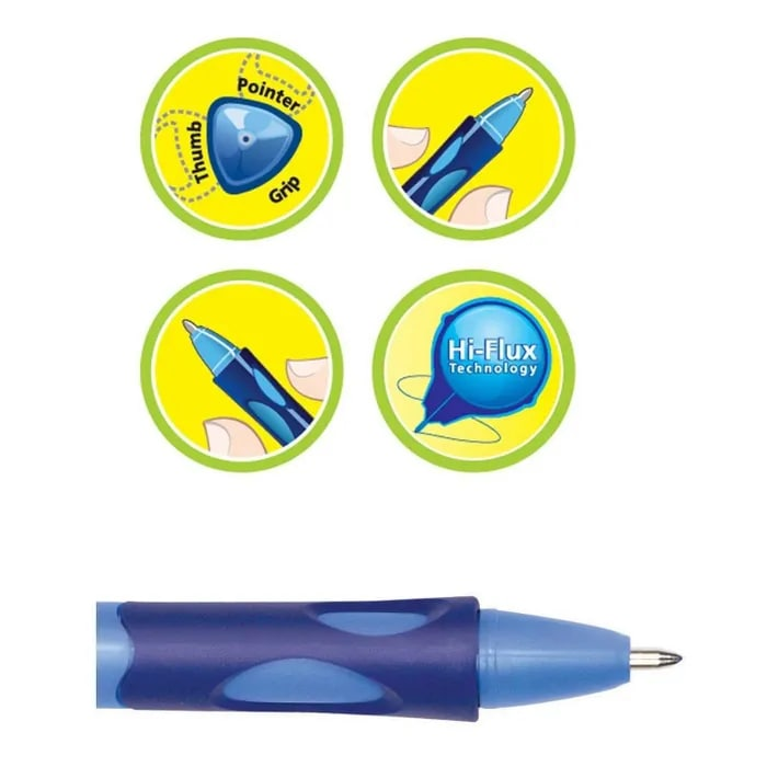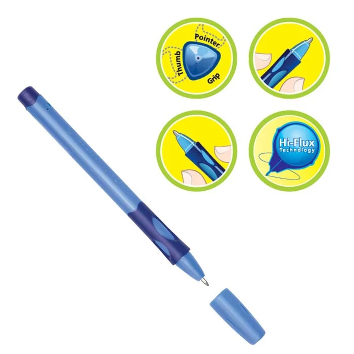 Ручка шариковая Stabilo LeftRight для левшей разработана немецкой компанией Stabilo совместно со специалистами в области медицины и образования специально для обучения письму детей дошкольного и младшего школьного возраста компания. Эксперты по эргономике подтвердили использование ручки Stabilo LeftRight с подсказкой для пальцев позволяет быстрее и легче сформировать правильный навык держать пишущий инструмент, четкий читаемый почерк и предотвращает напряжение и усталость руки ребенка во время письма. Специально для левшей: дизайн ручки адаптирован под манеру письма левшей. Ручка обеспечивает легкое и мягкое письмо практически без нажима и более высокую скорость письма благодаря чернилам пониженной вязкости и технологии Hi-Flux. Сменный стержень.