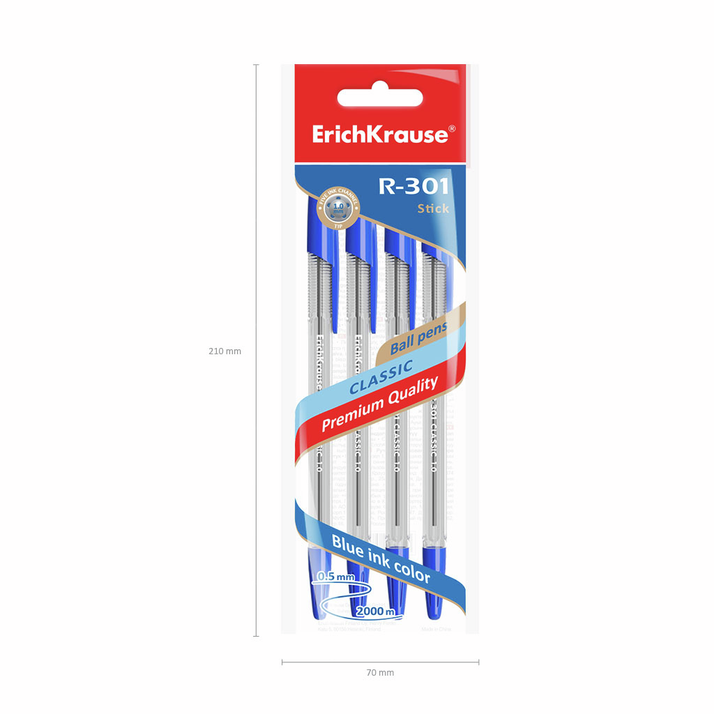 Классическая шариковая ручка Stick со стандартным типом пишущего узла и заменяемым стержнем. Ручка имеет прозрачный шестигранный корпус с удобной профилированной грип-зоной и вентилируемый колпачок. Цвет колпачка и заглушки соответствует цвету чернил. 5-канальный пишущий узел с диаметром шарика 1.0 мм в сочетании с быстросохнущими чернилами обеспечивает мягкое и комфортное письмо. Длина непрерывной линии составляет 2000 м при толщине 0.5 мм. Модель R-301 Classic 1.0 Stick имеет узнаваемую запатентованную форму и стала абсолютным бестселлером в ассортименте шариковых ручек ErichKrause более чем в пятидесяти странах мира.