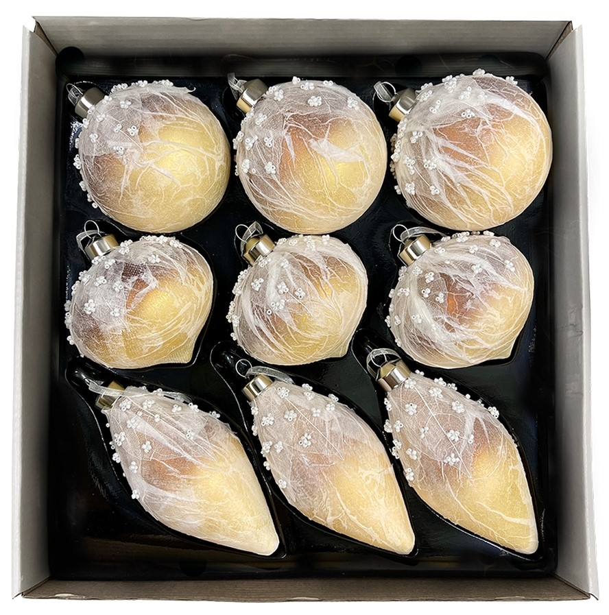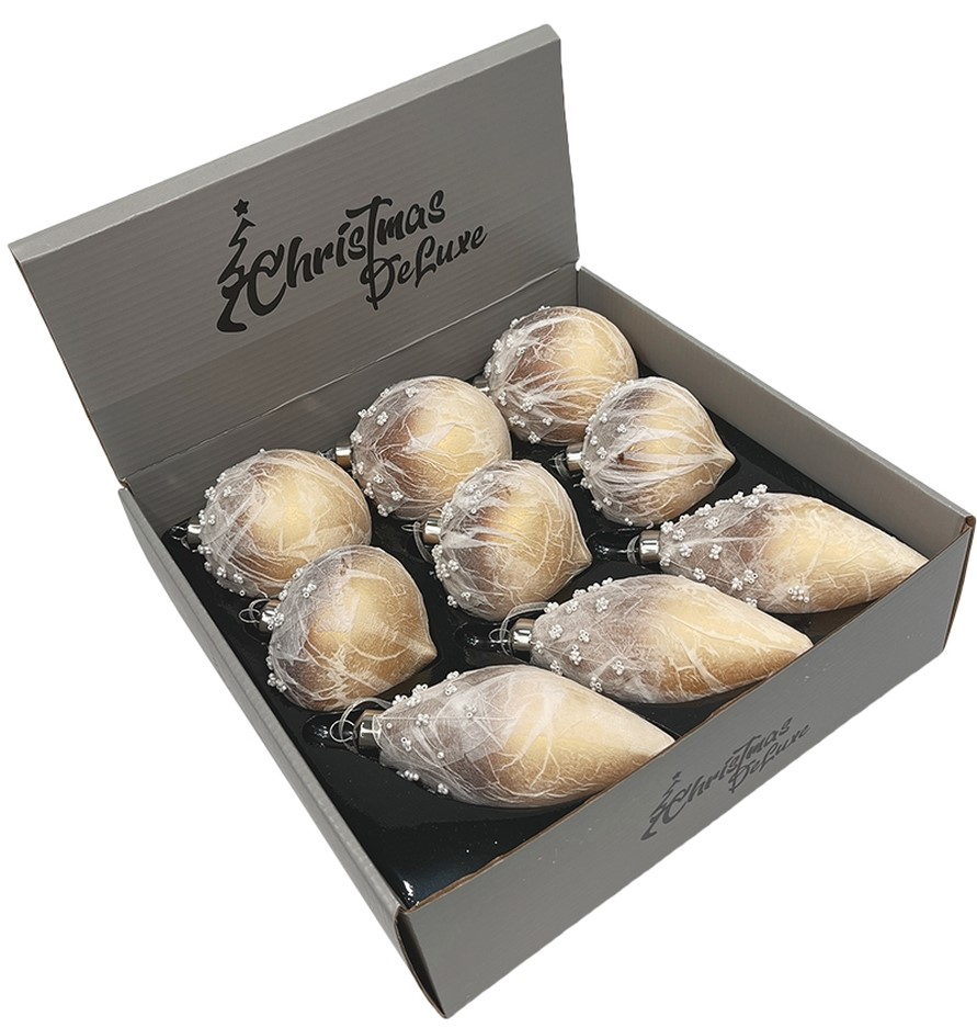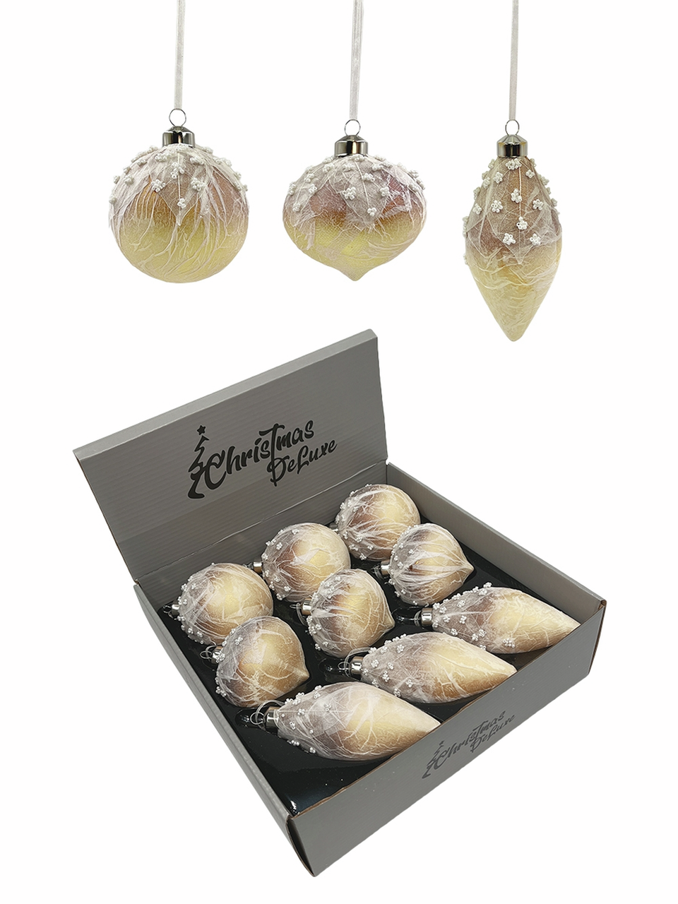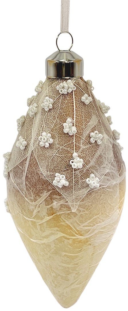 Елочное украшение Christmasdeluxe Шар, капля, луковка с листьями кремовый, 8см, в ассортименте