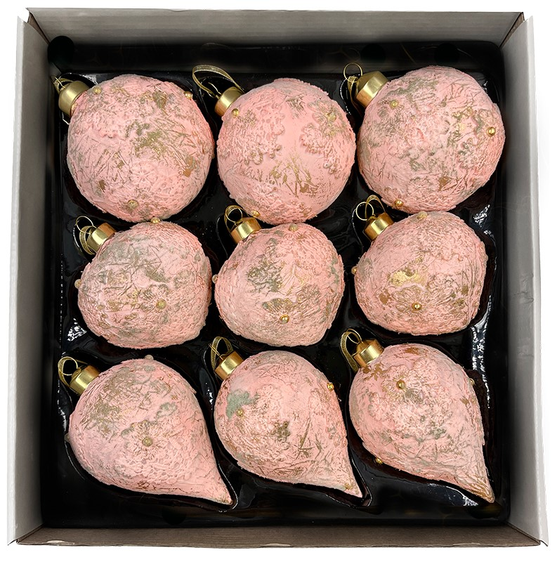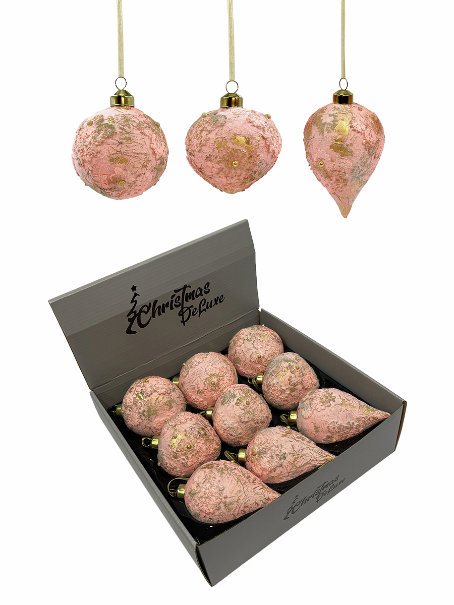Елочное украшение Christmasdeluxe Шар, капля, луковка с патиной розовый, 8см, в ассортименте