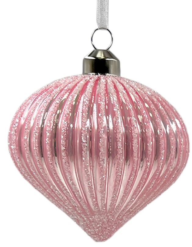 Елочное украшение Christmasdeluxe Шар, капля, луковка ребристый розовый, 8см, в ассортименте