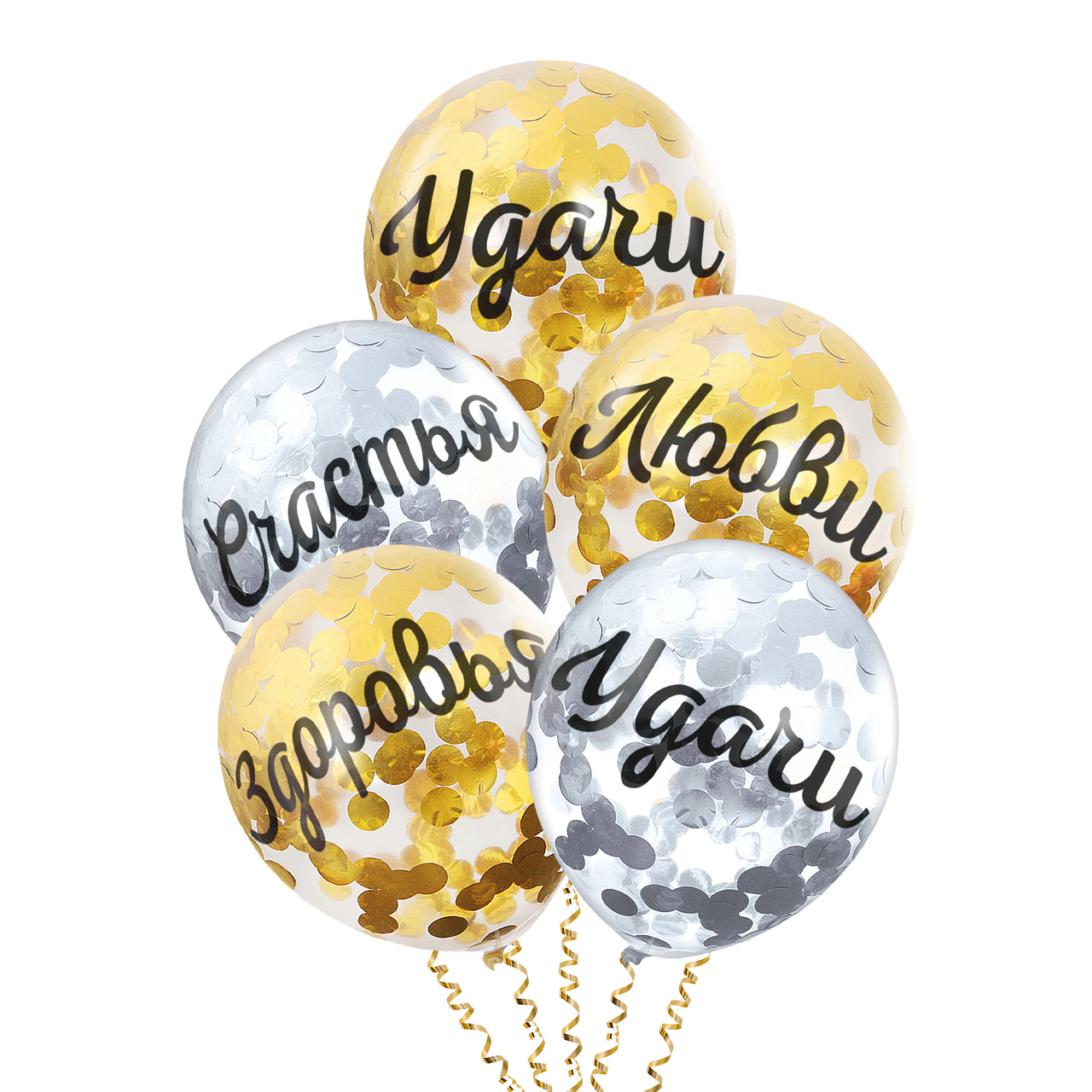 Шары надувные Fiolento Пожелания Конфетти золотые серебряные, 5шт