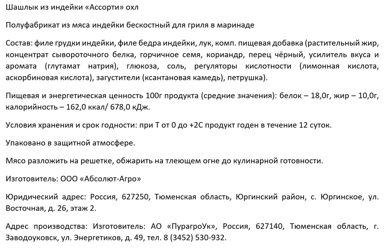 Шашлык из индейки Инди Ассорти охлажденный, 600г