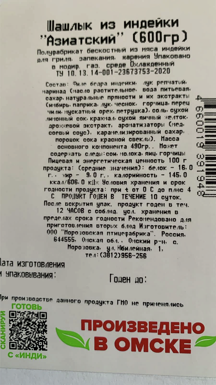 Шашлык из индейки Инди Азиатский охлажденный, 600г