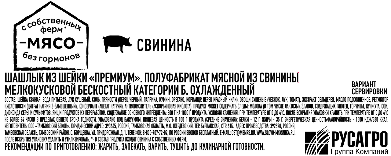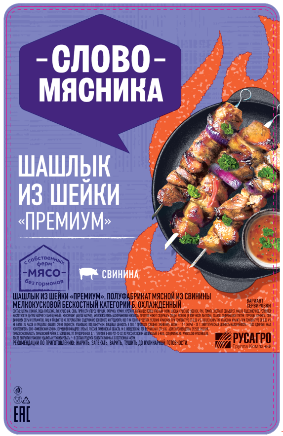 Шашлык из свиной шейки Слово мясника Премиум охлажденный, ~2кг