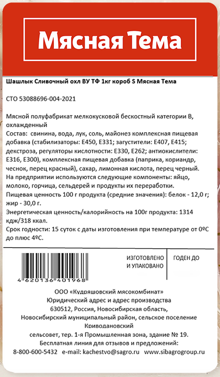 Шашлык свиной Мясная тема Сливочный охлажденный, ~2кг