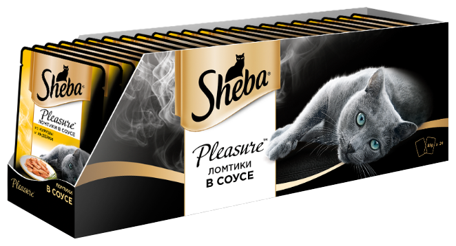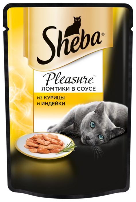 Корм влажный Sheba Pleasure Ломтики в соусе для взрослых кошек из курицы и индейки, 85г