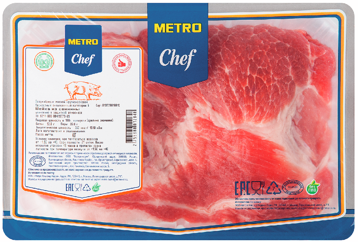 Шейка свиная Metro Chef, охлажденная, газонаполненная упаковка – это сочный и аппетитный натуральный стейк без кости, предназначенный для маринования и тепловой кулинарной обработки. Продукт изготовлен с использованием современных технологий и соответствует высоким мировым стандартам. Порционный полуфабрикат используют для приготовления жаркого, отбивных, шашлыков и других сытных обеденных блюд. Мясо приправляют соусами и душистыми травами, по вкусу добавляют лук, чеснок и другие специи, после чего жарят или тушат при определенной температуре в соответствии с рецептом. Продукт пользуется широкой популярностью у шеф-поваров, так как является важной составляющей большого количества традиционных блюд отечественной и европейской кухни. Приобрести шейку сви��ую Metro Chef, охлажденную, газонаполненная упаковка можно в торговом центре METRO.Ассортимент торговой марки METRO Chef – это продукты для профессионалов и людей, которые увлечены гастрономией. Среди них представлены кондитерские изделия, рыба, морепродукты, мясо, молочка, консервированные овощи и многое другое. Вся продукция изготавливается из безопасного и качественного сырья, и проходит строгий контроль на каждом этапе производства.