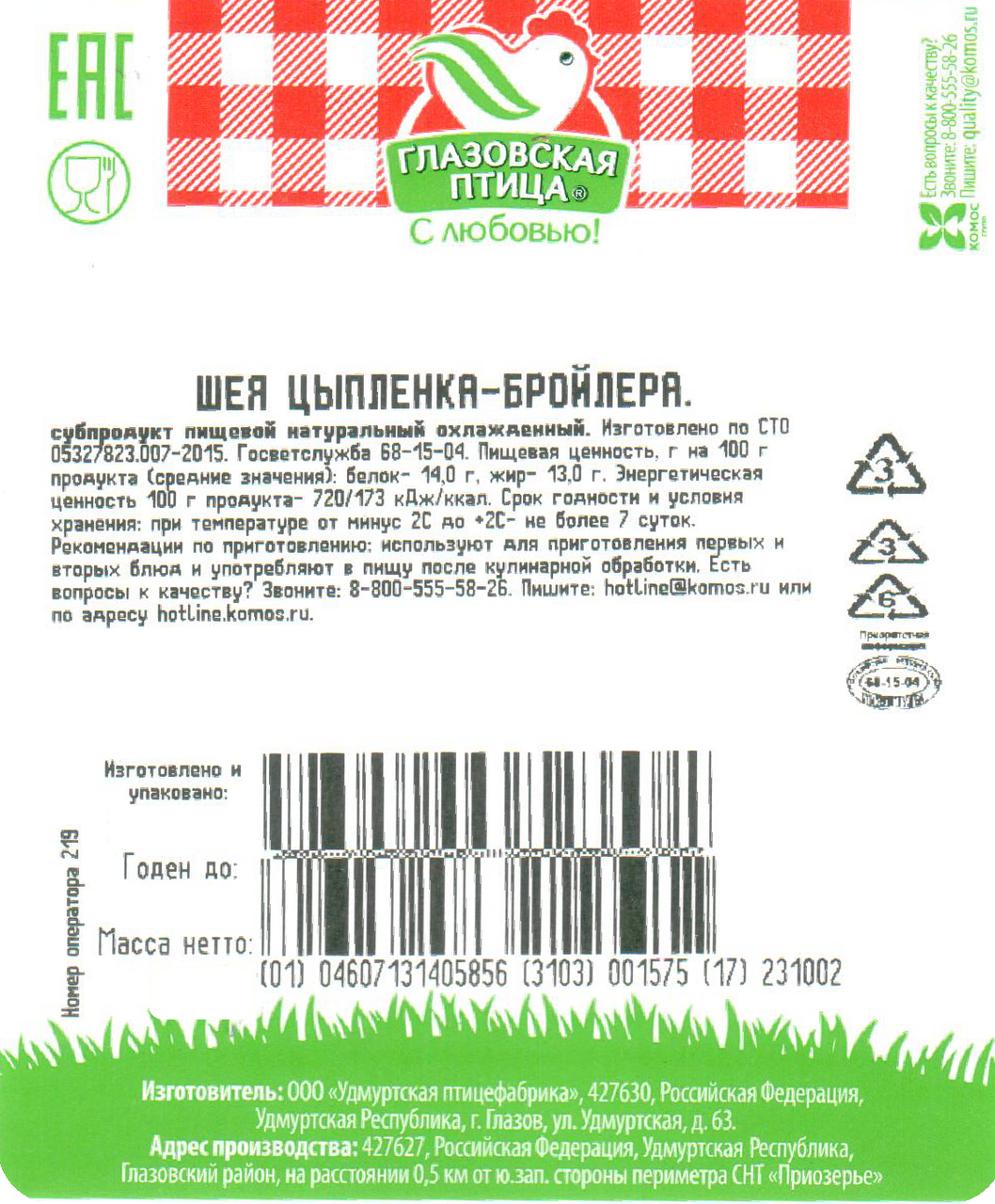 - Бренд ГЛАЗОВСКАЯ ПТИЦА