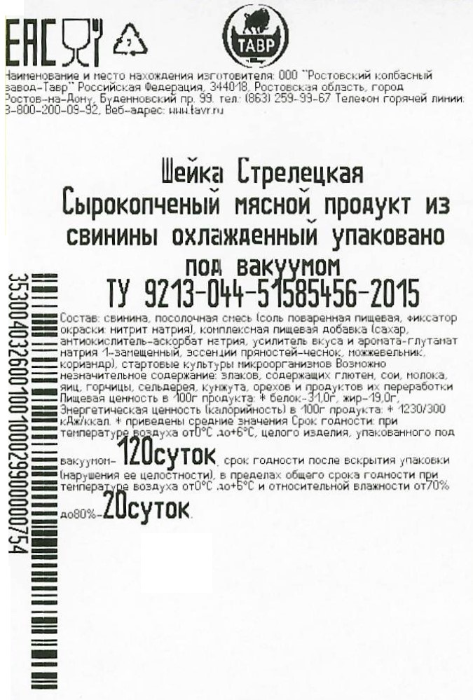Шейка свиная Тавр Стрелецкая сырокопченая, ~1кг