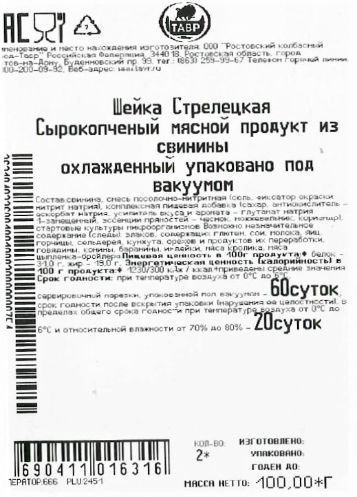 Шейка Тавр Стрелецкая нарезка, 100г