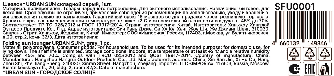 Шезлонг Urban Sun складной серый - роскошный, лаконичный по своей форме и стилю шезлонг без подлокотников создаст атмосферу полного расслабления и легкость средиземноморского бриза даже на Вашей загородной террасе.