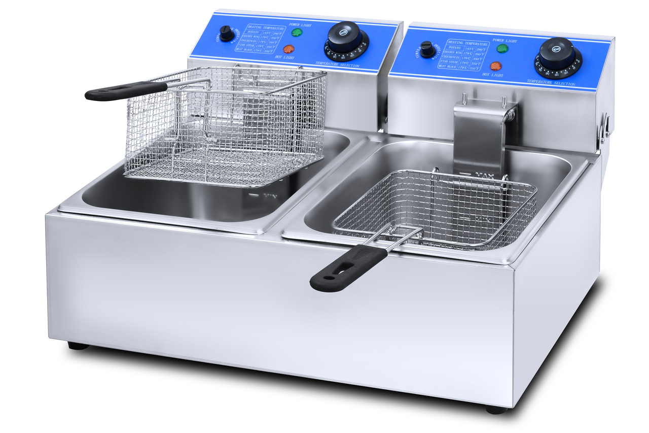 электрический, настольный, 2 котла емкостью 6 л с крышками, 2 фритюрные корзины, материал корпуса - нерж.сталь