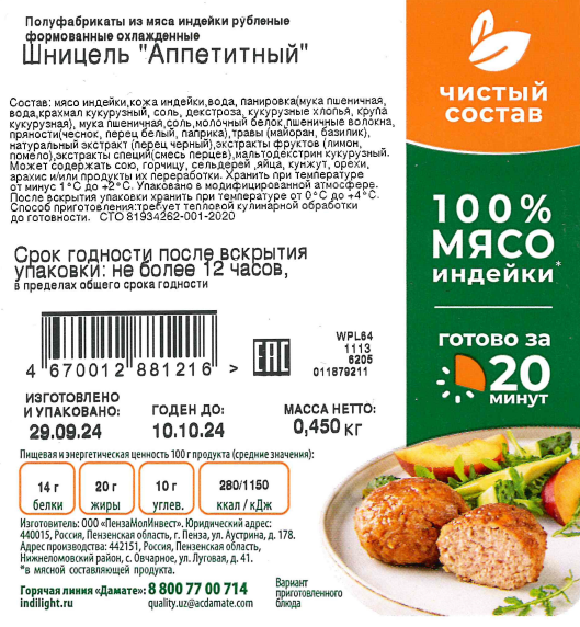 Шницель из индейки Индилайт Аппетитный охлажденный, 450г