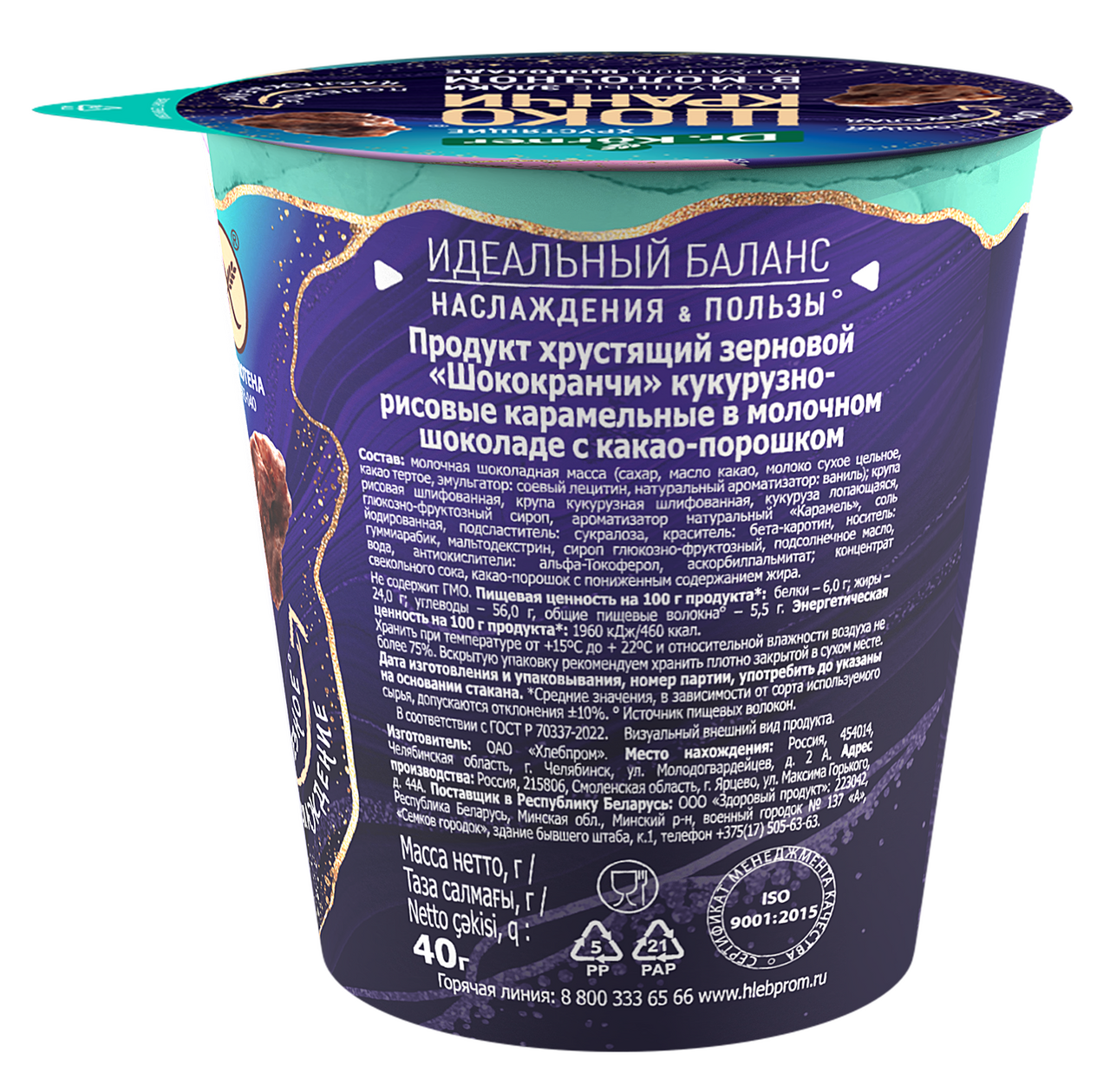Идеальный баланс вкуса и пользы, который создается из воздушных злаков и нанесенного по технологии 360˚ настоящего молочного шоколада. Шококранчи в молочном шоколаде - это по истине полезное наслаждение, которое является источником пищевых волокон и не содержит глютен.