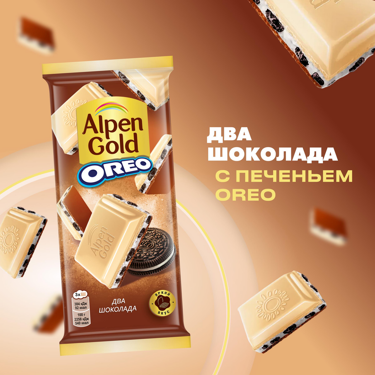Шоколад Alpen Gold Oreo молочный два шоколада, 85г
