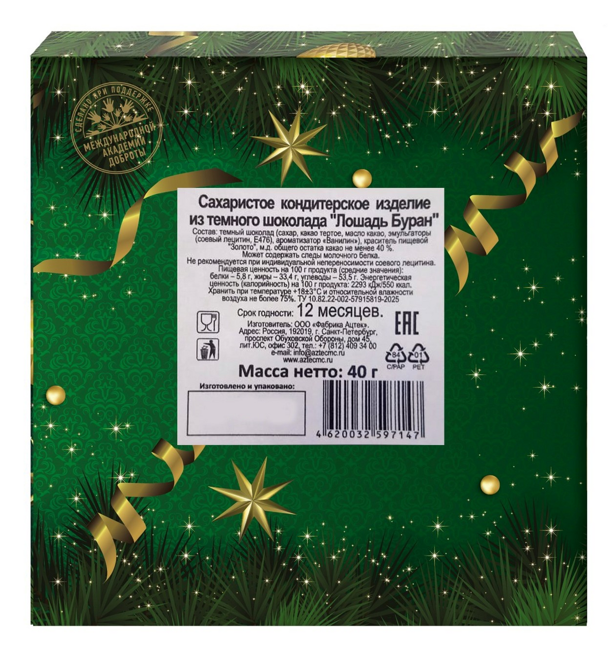 Шоколад Ацтек КФ Лошадь Буран из темного шоколада, 40г