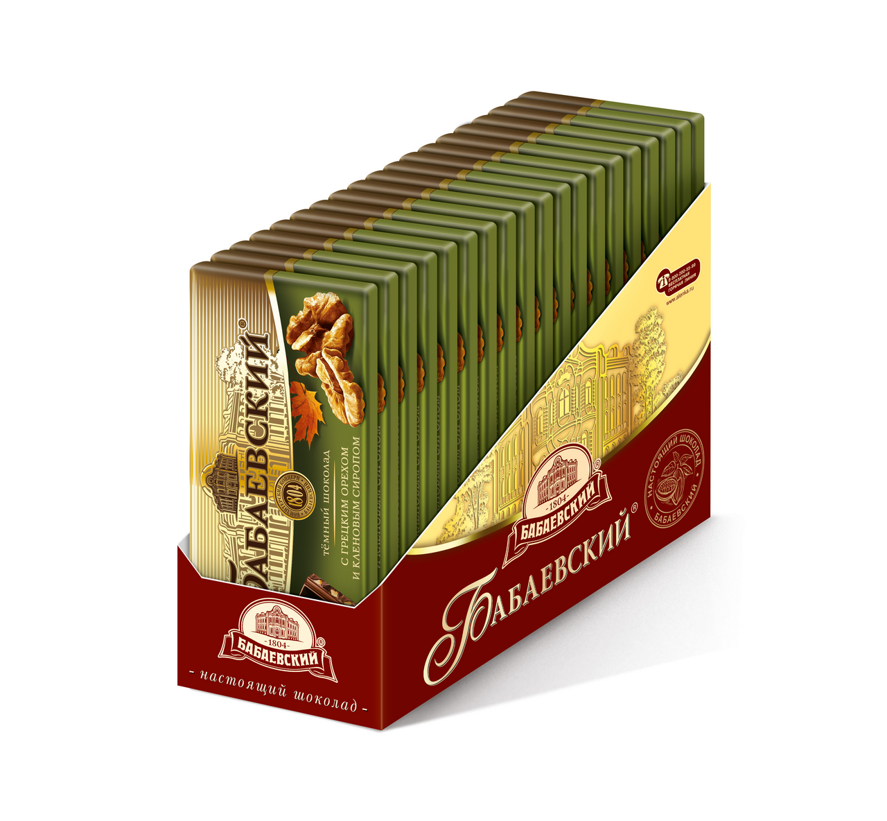 Тёмный шоколад Бабаевский с грецким орехом и кленовым сиропом - это трендовое сочетание вкуса и уникальный продукт на рынке! Классический горький шоколад с добавками благородного грецкого ореха и пряным ароматом кленового сиропа - эта новинка так и просится в качестве десерта к чашечке бодрящего кофе! Восхитительный шоколадный десерт, приготовленный с добавлением классического кленового сиропа и натурального грецкого ореха. Он великолепно дополнит ароматный утренний кофе или бодрящий чай. Шоколад подарит отличное настроение, как взрослым, так и детям.