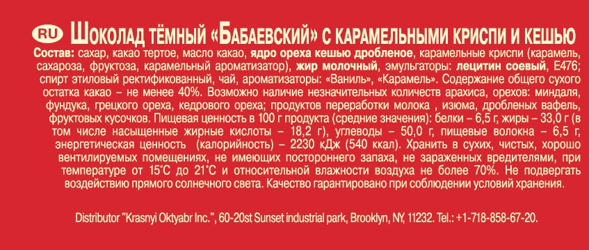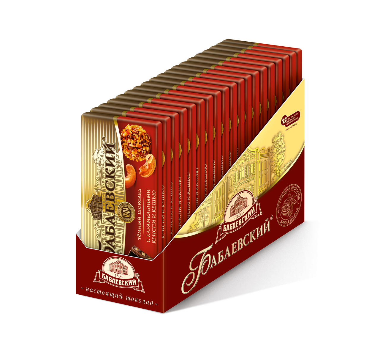 Тёмный шоколад Бабаевский с карамельными криспи и кешью - новинка, достойная вашего внимания! Хрустящая карамель с орехами кешью - это гармоничное, насыщенное сочетание вкуса и идеальное дополнение к дружескому чаепитию. Восхитительный шоколадный десерт, приготовленный с добавлением карамельного криспи и натурального хрустящего кешью. Он великолепно дополнит ароматный утренний кофе или бодрящий чай. Шоколад подарит отличное настроение, как взрослым, так и детям.