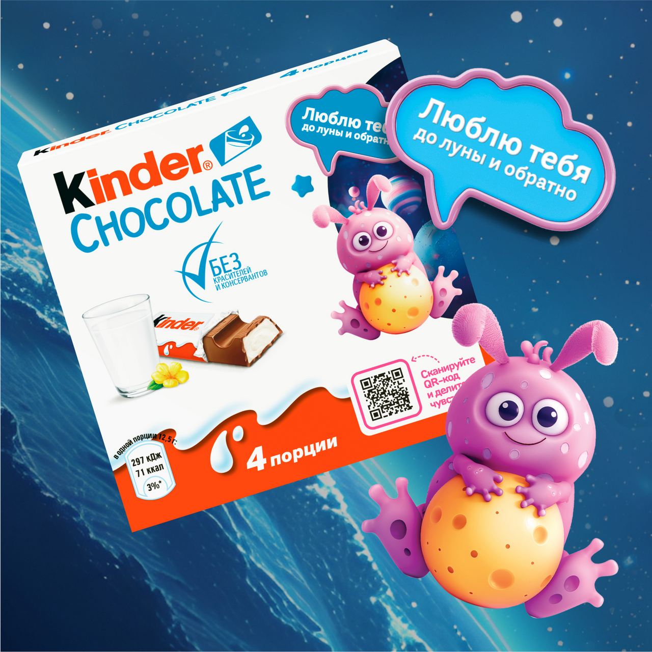 Kinder Chocolate (Киндер Шоколад) - это молочный шоколад высокого качества, который создан специально для детей. Благодаря своему уникальному рецепту – нежному молочному шоколаду с молочной начинкой – Kinder Chocolate идеально подходит для детей, когда им хочется сладостей, и для мам, так как индивидуально упакованные батончики Kinder позволяют родителям с легкостью контролировать потребление шоколада детьми.