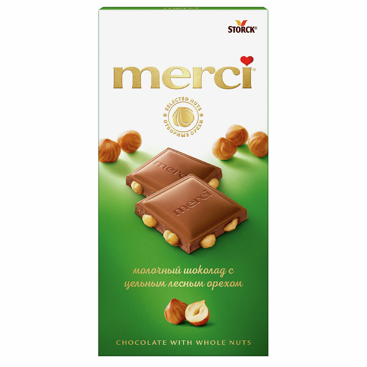 Шоколад Merci молочный c цельным лесным орехом, 100г
