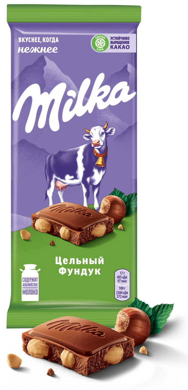Сочетание молочного шоколада и цельного фундука - это восхитительный дуэт, вкус которого вряд ли кого оставит равнодушным. Вкуснее, когда нежнее!