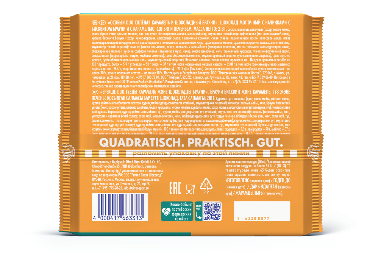 Шоколад Ritter Sport Duo молочный особый, 218г