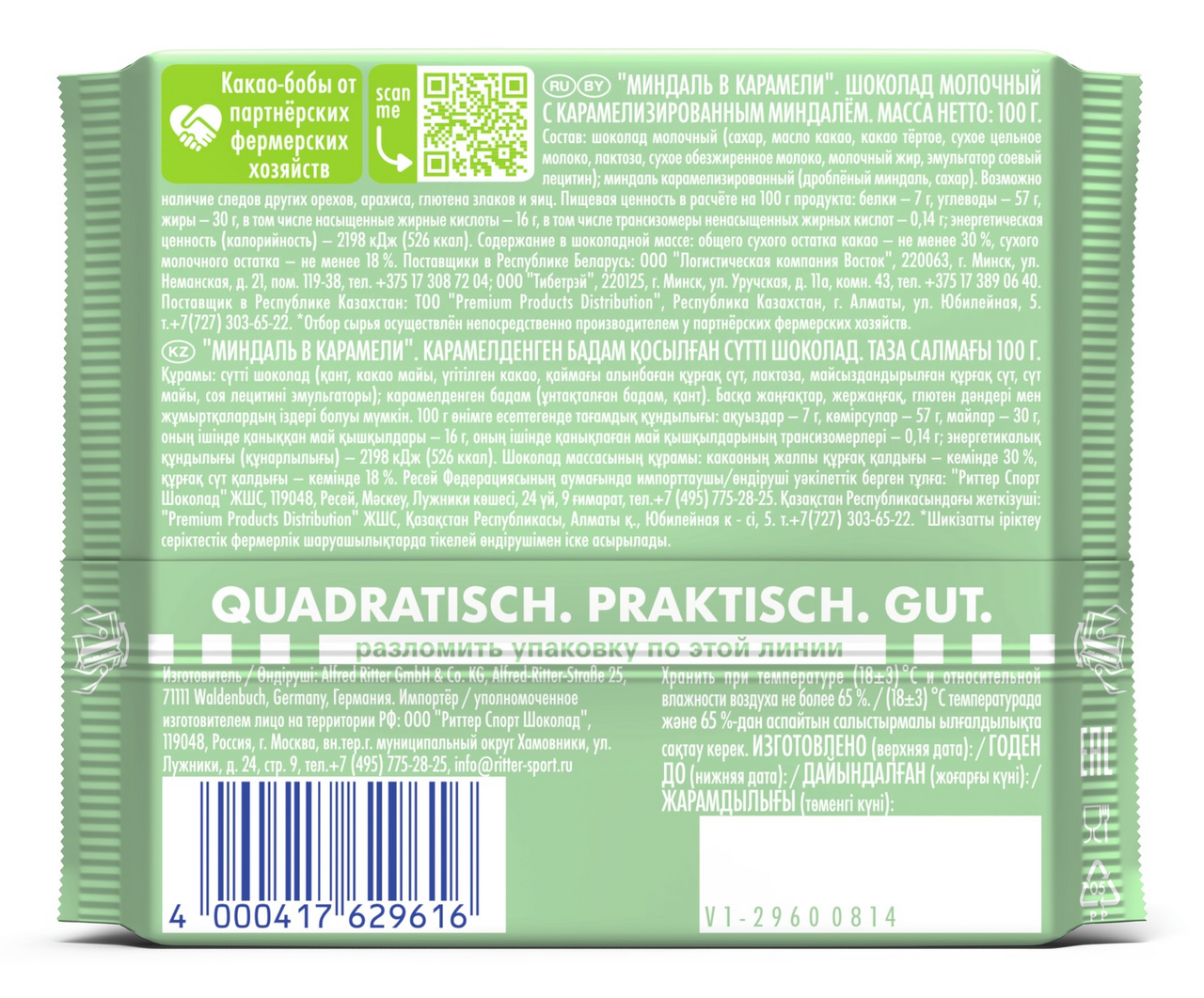 Шоколад Ritter Sport Миндаль в карамели, 100г