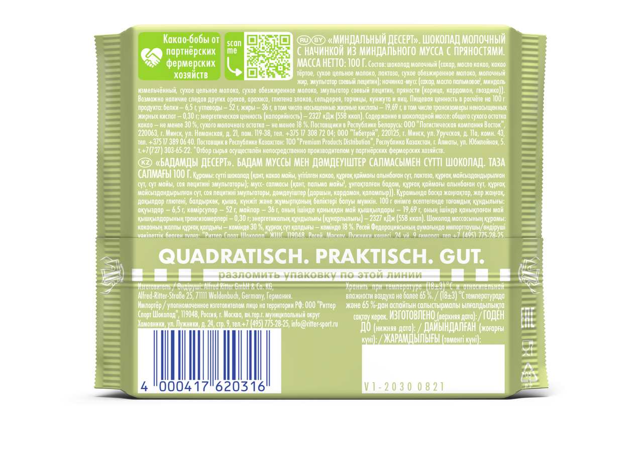 Шоколад Ritter Sport молочный миндальный десерт, 100г