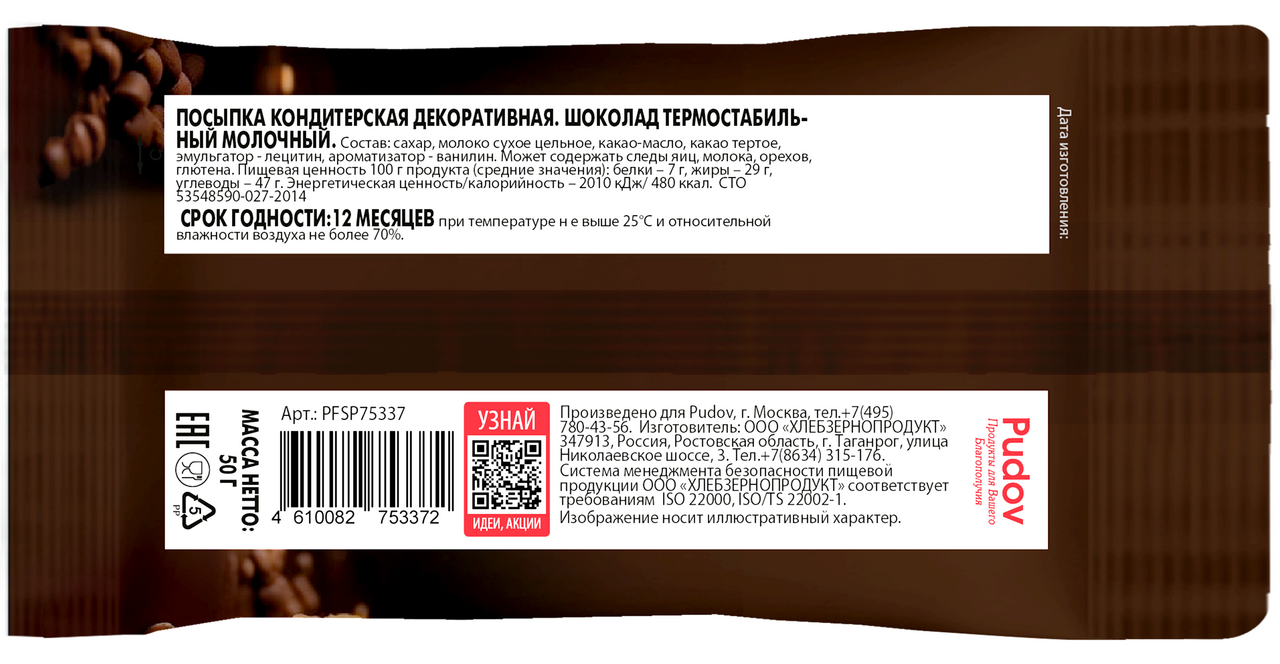 Шоколад С.Пудовъ молочный термостабильный, 50г