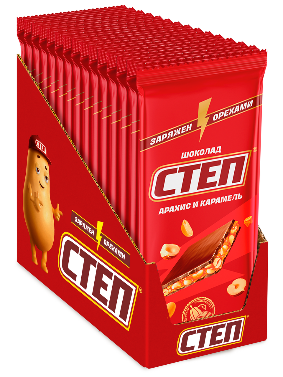 Шоколад Степ молочный с арахисом и карамелью, 80г