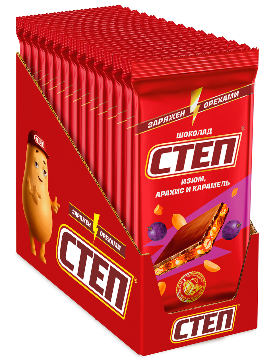 Шоколад Степ молочный с изюмом арахисом и карамелью, 80г