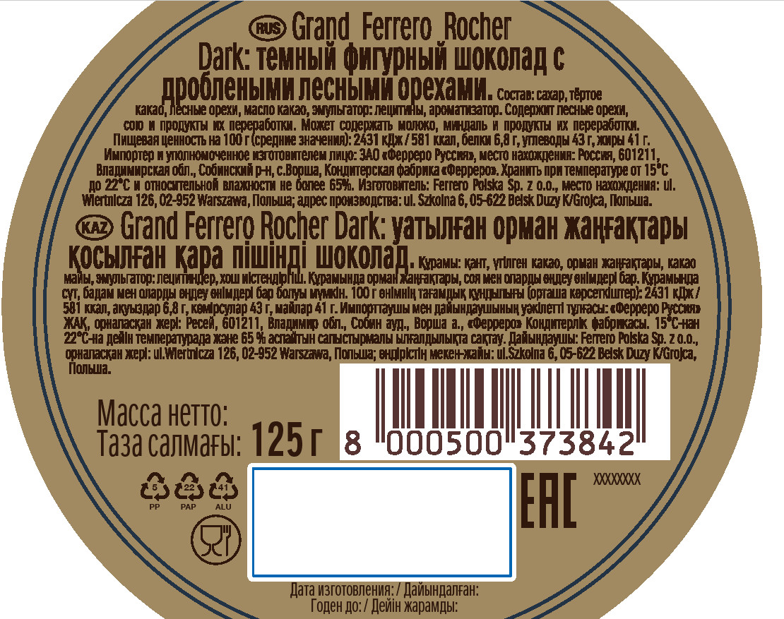 Шоколад темный Ferrero Rocher Grand фигурный, 125г