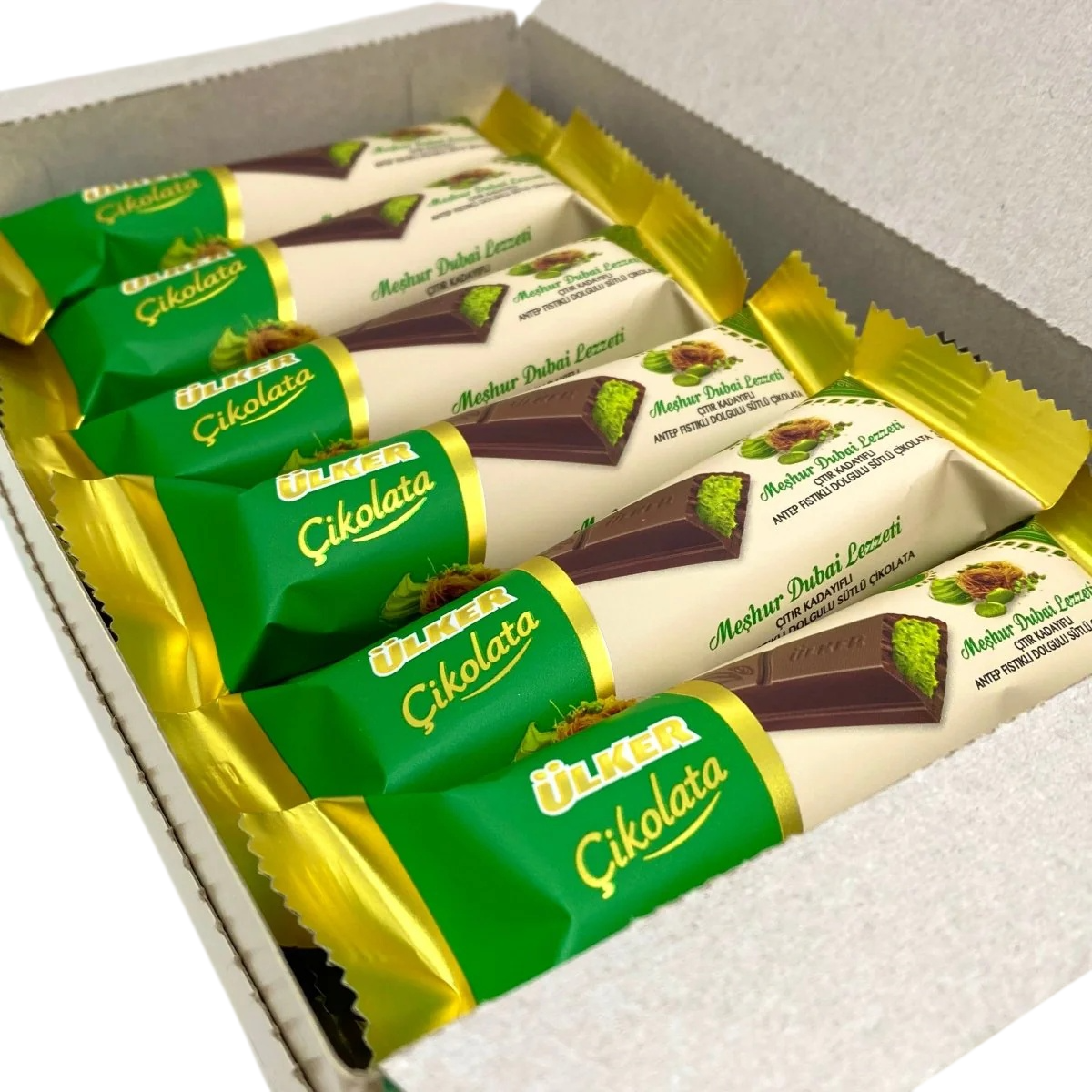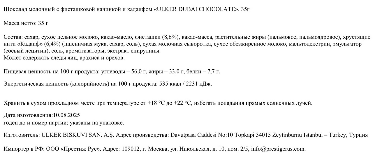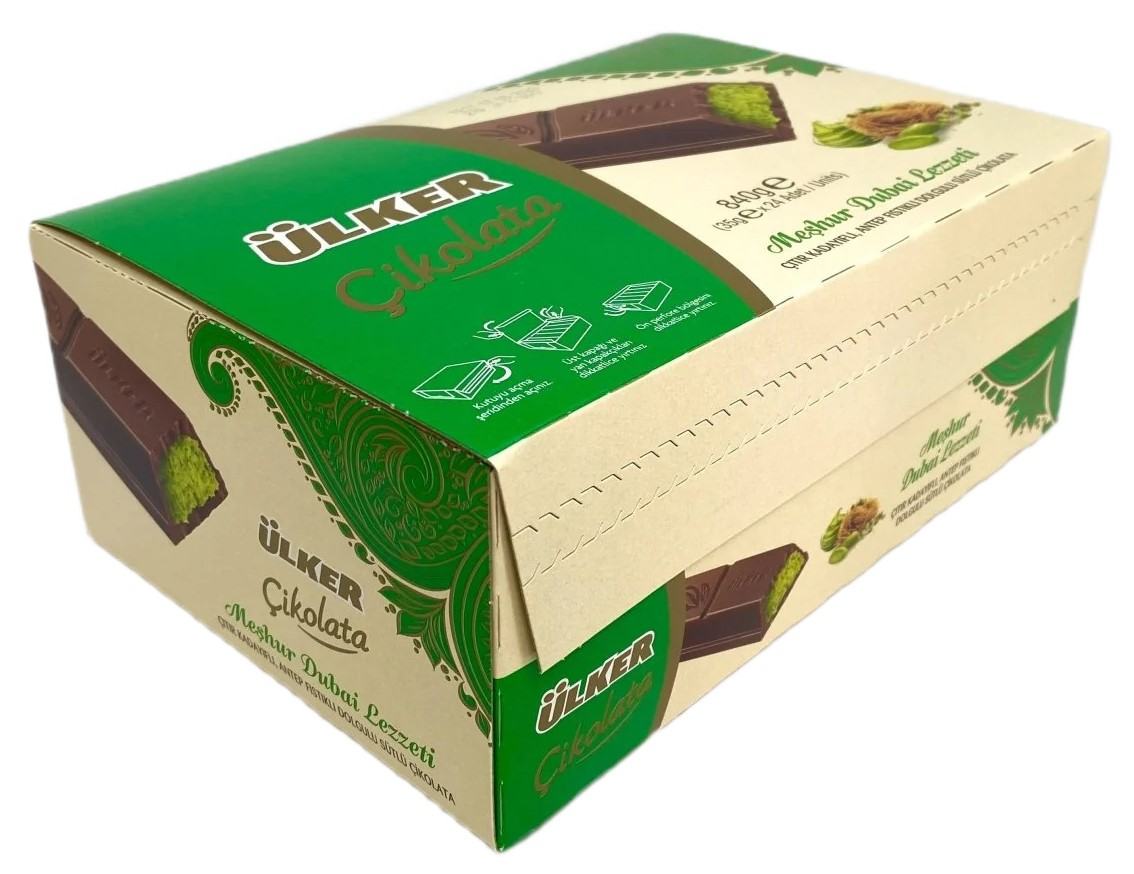 Дубайский шоколад с фисташковой начинкой и кадаифом от бренда Ulker — это поистине уникальное кулинарное творение, которое сочетает в себе традиционные восточные ароматы и высокое качество молочного шоколада. Этот шоколад украшен фисташковой пастой и хрустящими частицами кадаифа, что делает его поистине уникальным как по вкусу, так и по текстуре.