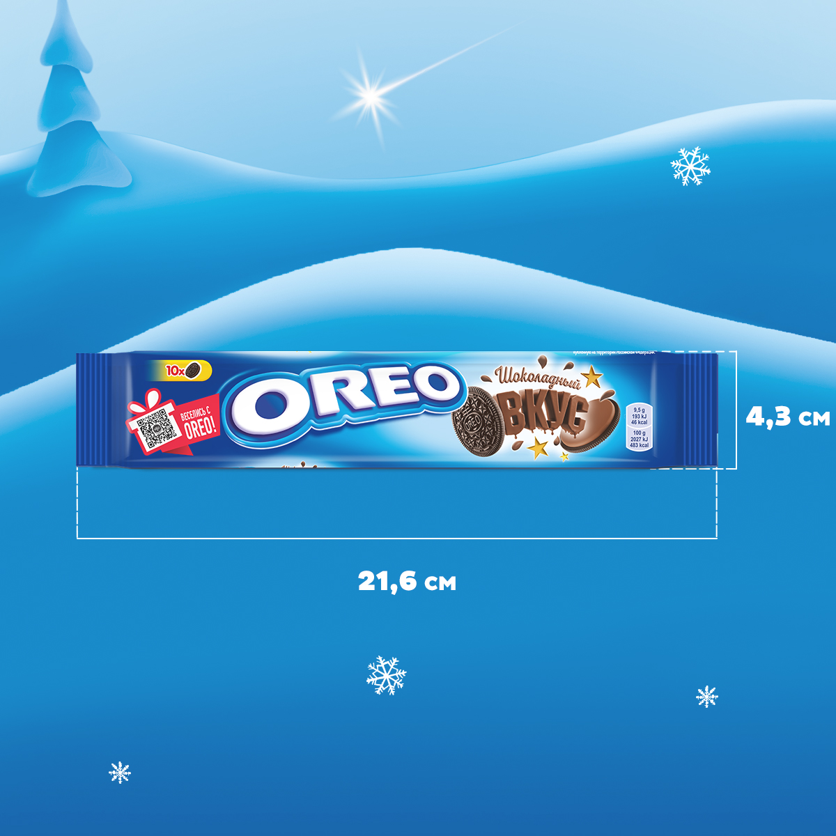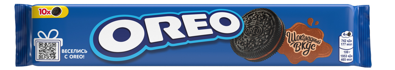 Участвует в конкурсе: Выиграйте кофемашину на сладкое! Совершите покупку товаров-участников на сумму от 1500₽ с 23 октября 2025г. по 14 января 2026г. и получите шанс выиграть кофемашину или другие сладкие призы! Чем больше покупок - тем больше шансов на победу! Подробнее об акции - https://cdn.metro-cc.ru/ru/mndlz_2025.pdf. Бисквитное печенье Oreo - хрустящее печенье с какао и нежной начинкой со вкусом шоколада, которое любит весь мир. Взрослым и детям нравится забавный способ, которым едят Oreo: Покрути, Лизни, Обмакни. Попробуйте, это весело и очень вкусно. Печенье бисквитное с начинкой Oreo - вкусный перекус, который отлично сочетается с молоком и соком. Печенье порционное подойдет в качестве сладости к чаю или кофе, и его удобно съесть на завтрак, взять с собой в дорогу, взять в школу, в университет, на работу или на прогулку. Какао-печенье Oreo идеально подойдет, чтобы сделать перерыв, побаловать себя, провести время с семьей, для просмотра фильма или сериала, для встречи с друзьями. Это отличный вариант сладкого угощения на праздник и на День рождения. Упаковка печенья с какао и начинкой с шоколадным вкусом безусловно порадует и детей, и взрослых! Oreo - играй всегда.