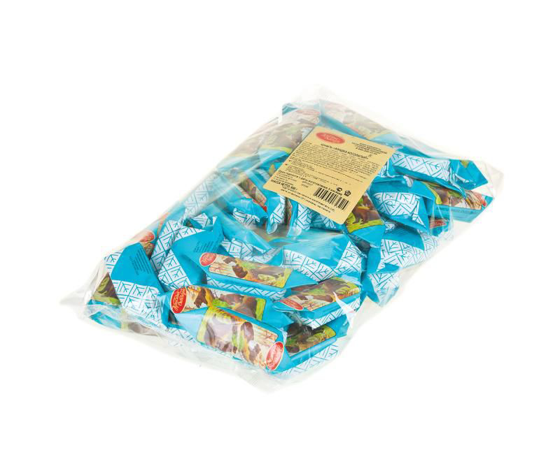 Конфеты ''Мишка Косолапый'' 800г. Состав: арахис дроблёный, шоколадная глазурь (сахар, какао тёртое, эквивалент масла какао, какао-порошок, эмульгаторы Е322, Е476, ароматизатор идентичный натуральному ''Ваниль''), сахар, патока, ядро ореха фундука дроблёное, пюре фруктовое, заменитель молочного жира (растительный), мёд натуральный, сухое цельное молоко, ароматизатор идентичный натуральному ''Ванильно-сливочный'', желирующий агент Е407, эмульгатор Е322, регуляторы кислотности - кислота лимонная и цитрат натрия. Противопоказано при индивидуальной непереносимости белка молока. В 100 г продукта содержится: белки - 9,5г; жиры - 27,9г; углеводы - 52,9г. Энергетическая ценность: 493 ккал/100 г. Хранить при температуре от 15 до 21'С и относительной влажности воздуха не более 75%. Не подвергать воздействию прямого солнечного света. Срок годности 8 месяцев.