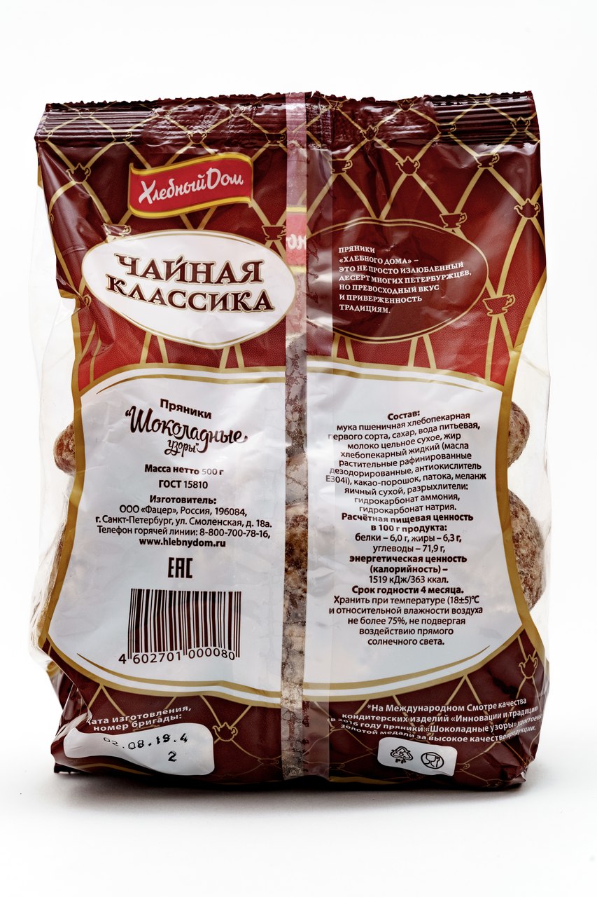 Пряники шоколадные узоры, 500г