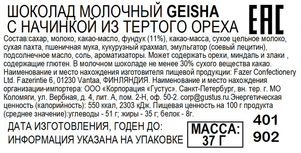 Шоколадный батончик Fazer Geisha тертый орех, 37г