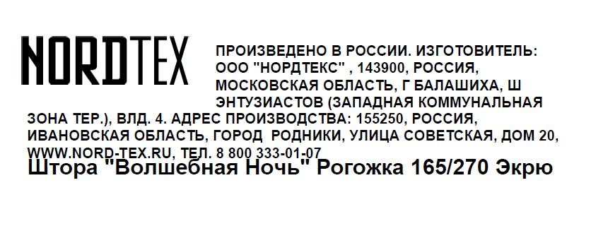 Штора Волшебная ночь Экрю рогожка, 165 x 270см