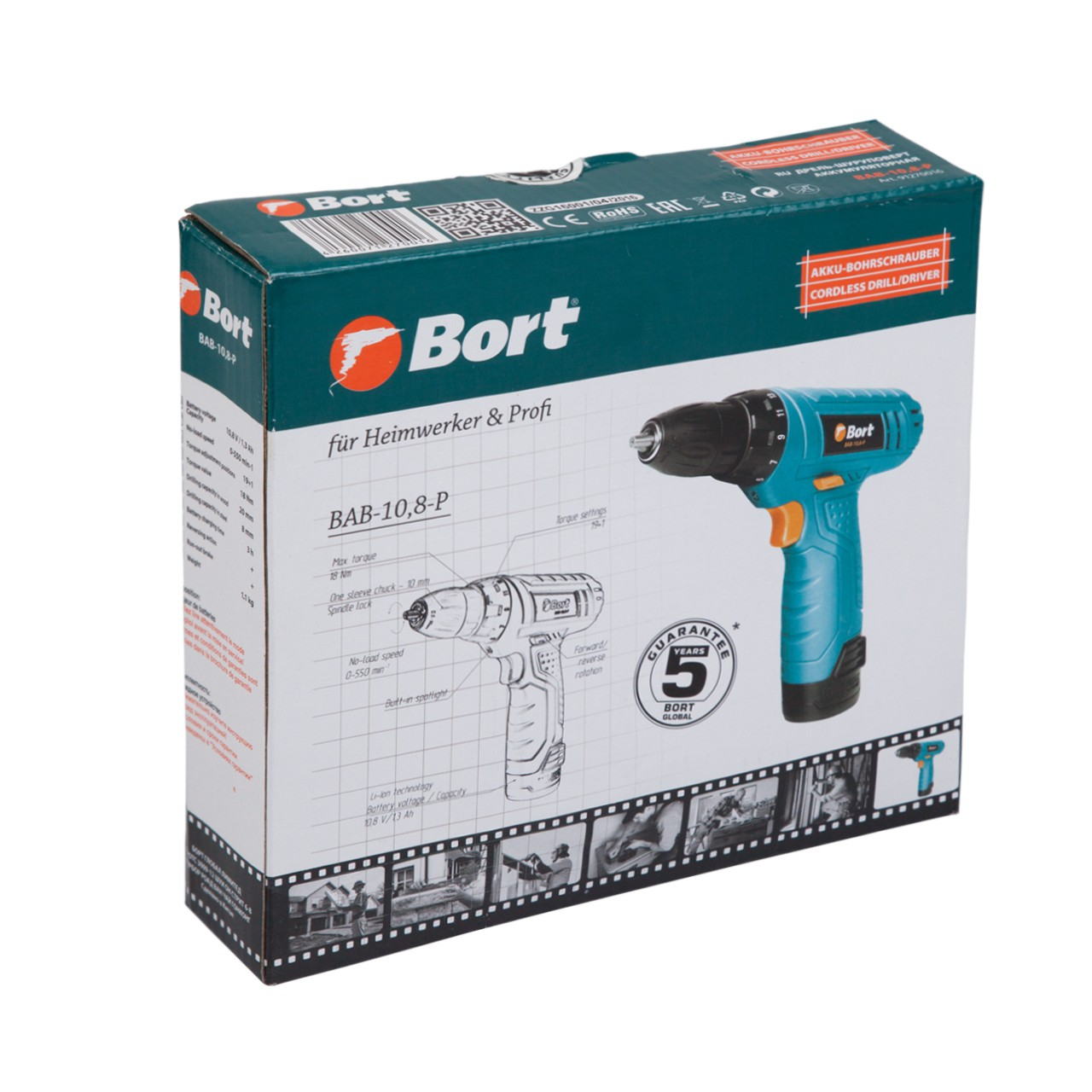 Шуруповерт Bort BAB-10.8-P - отличный и легкий инструмент для дома. Li-Ion батарея обеспечивает продолжительную и бесперебойную работу.Отсутствует эффект саморазрядки, поэтому дрель всегда готова к работе. Несмотря на сверхкомпактный й размер,шуруповерт Bort BAB-10.8-P обладает высоким крутящим моментом, 18Нм с запасом хватает для большинства работ. Есть подсветка рабочей зоны. Оптимизированная упаковка позволяет съэкономить при хранении и транспортировке, а это немаловажно в современных условиях. Ее размеры в 1,5 раза меньше, чем у конкурентов. Мощный и компактный мотор 500-й серии рационально использует энергию батареи, позволяя долго обходиться без подзарядки.