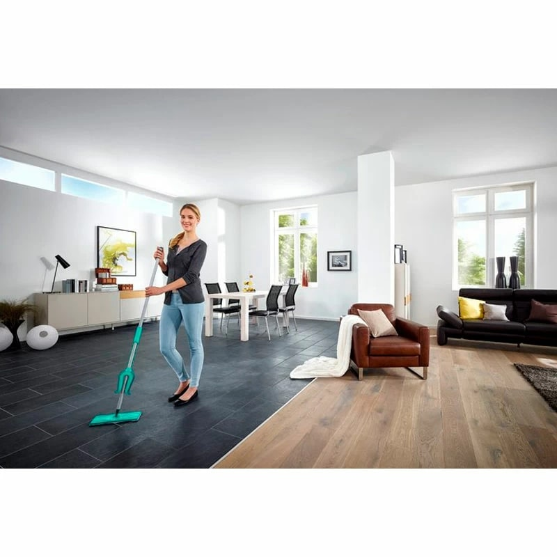 Швабра хозяйственная для пола Leifheit 57023 Picobello S micro duo, 27 x 140 см идеально справится с загрязнениями на любых напольных поверхностях, будь то ламинат, паркет, плитка и другие. Она позволит в считаные минуты навести порядок дома, в офисе, в гостинице и отеле. Насадка на швабре сделана из мягкой микрофибры. Этот материал отлично впитывает влагу и характеризуется высокой износостойкостью, за счет чего насадка прослужит вам не один год. К тому же микрофибра не оставляет после себя ворсинок и хорошо выжимается. Материал эффективно собирает грязь, шерсть и волосы. Он удерживает воду до 70% лучше, чем хлопок. Все предметы сделаны из материалов высокого качества. Швабра изготовлена из прочного и крепкого металла и пластика, которые отлично выдерживают незначительные механические повреждения вроде царапин и потертостей. Благодаря компактным размерам она не займет много места в кладовке и в шкафу. Тонкий дизайн швабры позволяет проникать под кровати, диваны и другую мебель. Она поворачивается на 360 градусов и легко огибает углы, ножки мебели и разные препятствия.