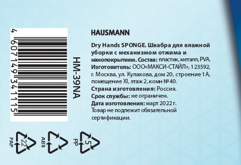Швабра Hausmann Dry Hands Sponge с механикой отжима