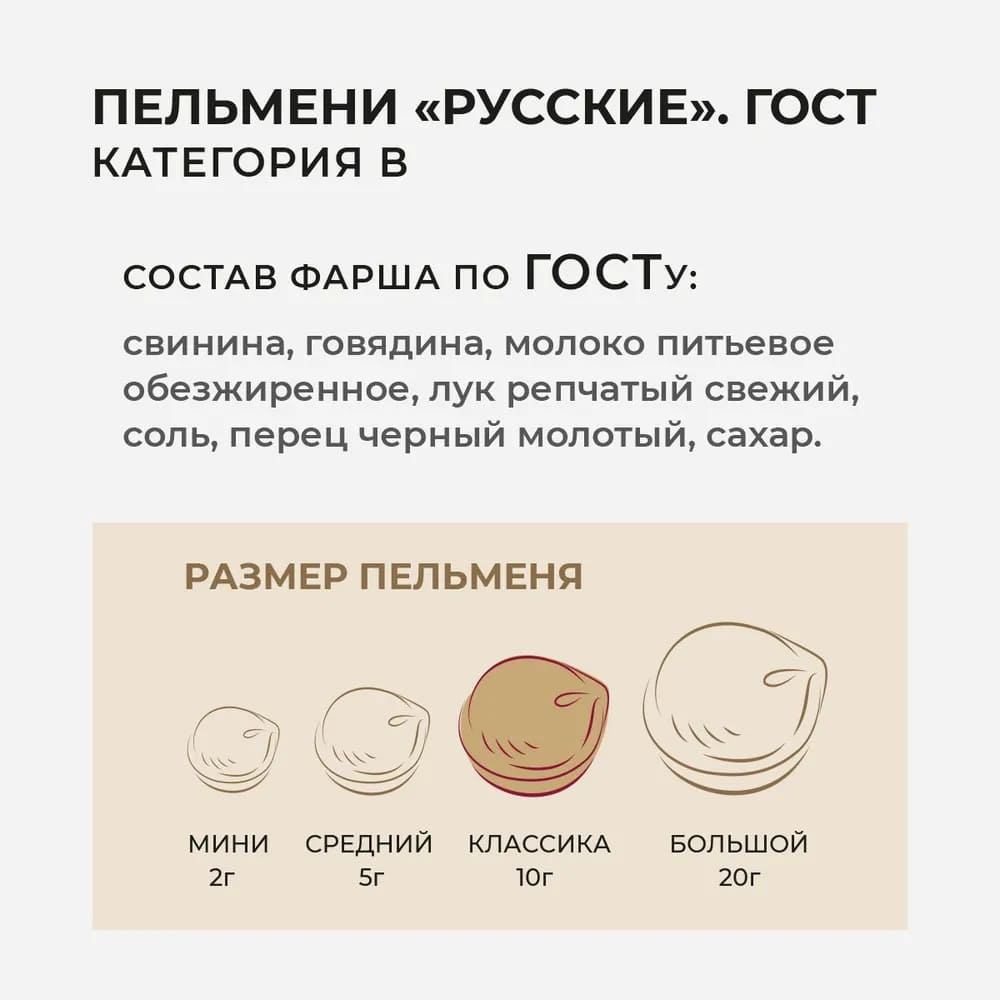Пельмени Сибирская коллекция Русские 800г - замороженный полуфабрикат, приготовленный из свежего теста и начинки из натуральных ингредиентов: высококачественной говядины и свинины, настоящих сливок, лука и специй. Вес каждого изделия - 10 грамм (или 10 карат по шкале Сибирской коллекции). Инновационная трехслойная упаковка защищает пельмени от проникновения света, обладает антисептическим действием и удерживает холод внутри пакета. Благодаря этому сохраняется первоначальный вкус и питательные свойства продукта.