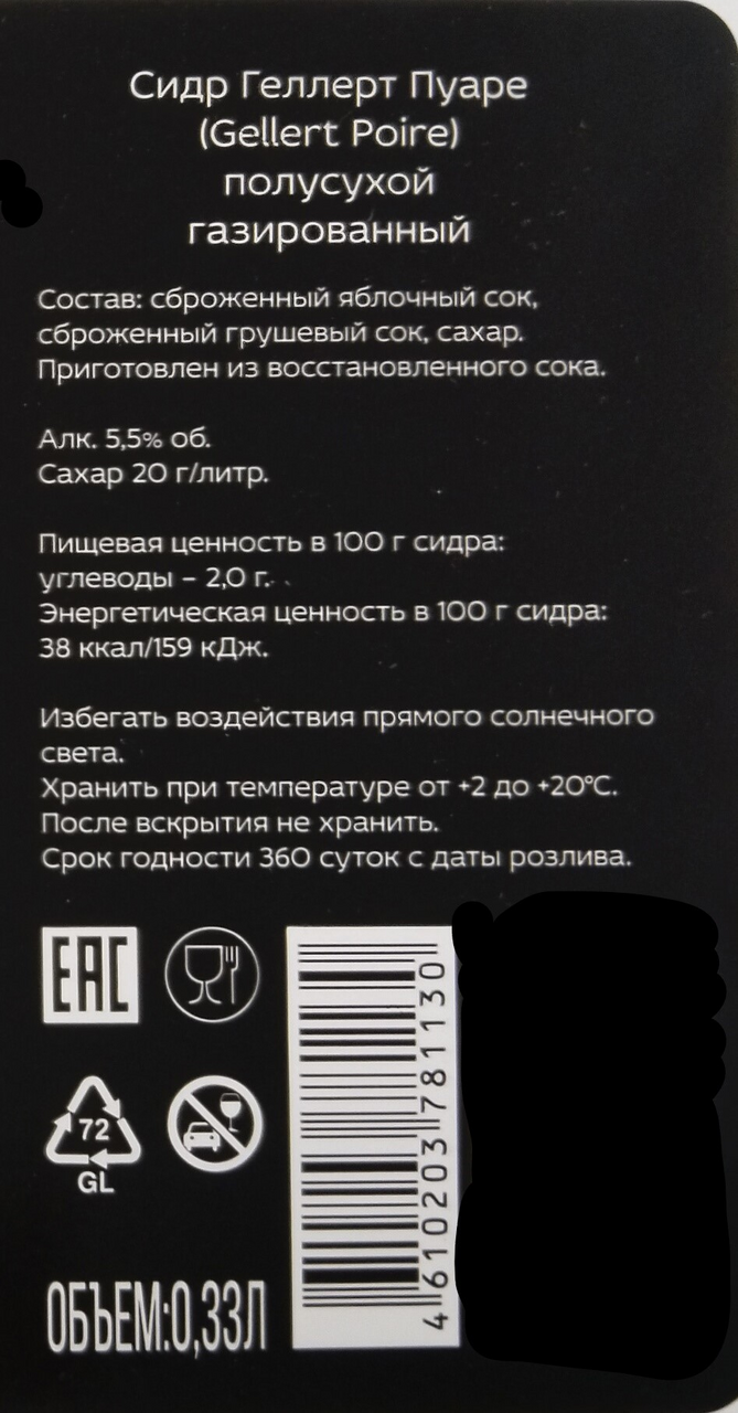 Сидр с добавлением грушевого сока. Обладает лёгким ароматом игристых вин и освежающим вкусом. Он отличается приятным, соломенным цветом с зеленоватыми отблесками, душистым грушевым ароматом и насыщенным вкусом с продолжительным послевкусием. Пуаре составит отличную компанию десертам из сладких фруктов и запеченному с яблоками мясу птицы, он отлично утоляет жажду и дарит солнечное настроение.